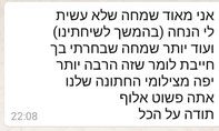 אני מאוד שמחה שלא עשית לי הנחה (בהמשך לשיחתינו) ועוד יותר שמחה שבחרתי בך
