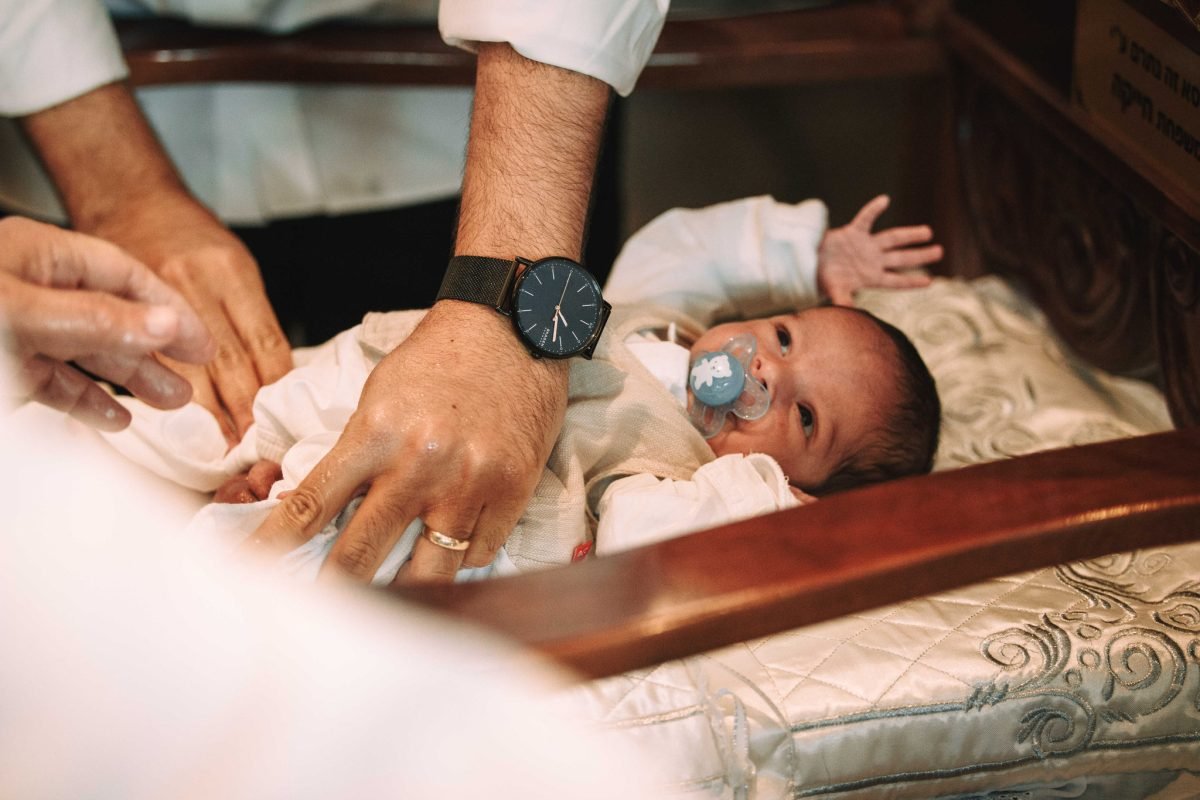 הבלונים הנהדרים באולם, בצבעי כחול-לבן וזהב, הכוסות המבריקים על השולחנות הערוכים למופת, התאורה שנותנת משחק אור וצל עם רצפת השיש, כסאו של אליהו הנביא המהודר, עמדת המוהל מוכנה, והאורחים והמשפחה המורחבת מתחילים להגיע. זהו אירוע שלא ראינו אחד את השני מזמן בשל סגרי הקורונה אז השמחה היא שבעתיים. אני נרגש לראות את כולם מחדש, מחליפים חוויות, מתוודעים זה לזה מחדש, מתחברים וכמובן כולם רוצים לראות את התינוק, להחזיקו ולחבקו. הצלם עובר בין כולנו ומצלם