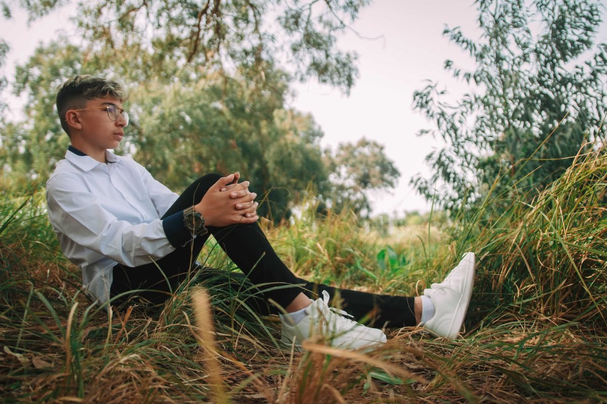 גיל הבר-מצווה הוא גיל מאוד משמעותי, גיל מיוחד מאוד. המעבר בין גיל הילדות לגיל הבגרות – תקופת ביניים אשר יש בה גם מהישן וגם מהחדש המתהווה ונבנה. בחיבורי עם הנער הזה הבנתי שאין מקום יותר טוב להתחיל את הצילומי בוק בר מצווה מאשר הסקייטפארק בנתניה, כהמשך ישיר לבית הכנסת. הסקייטפארק הינו מקום אשר מהווה עבורו השראה וחיבור לתוככי עצמו. את הצילום הראשון בבוק זה בחרתי להתמקד בקפיצה עם הסקטבורד, אותו סקטבורד בעל ערך מהילדות, והרגליים באוויר משתחררות ממנו ומבטו למטה לעבר אותו הכלי, לעבר הילדות, וכבוגר הלוקח אחראיות על הראש קסדה. תמונה אשר תישאר שם מתי שירצה להיזכר בתקופת מעבר זו בין החדש הנוצר לבין הישן המשתחרר
