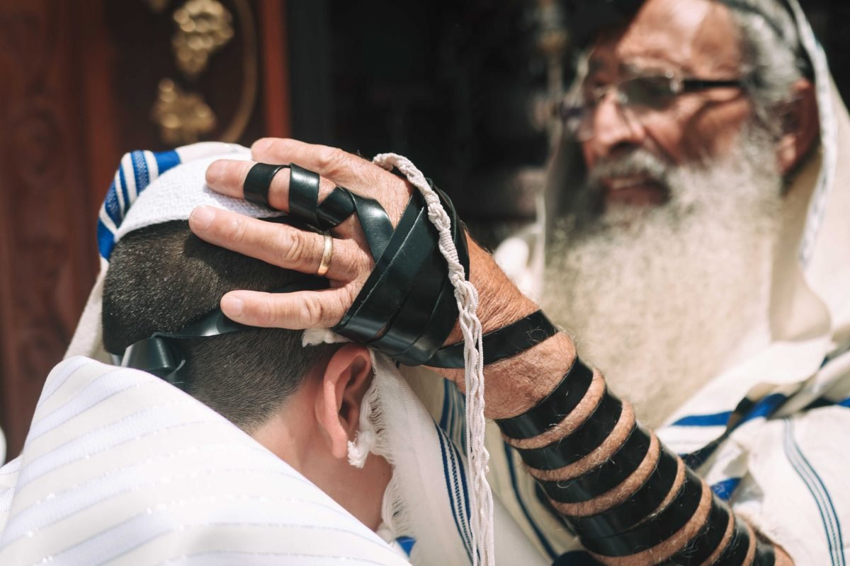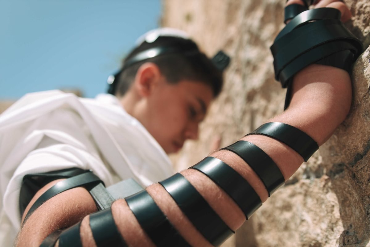 הנער מניח תפילין ואני מתמקד ביד הכורכת אותם האוחזת בסידור התפילה. זה זמן של רצינות וריכוז של הנער , כול כולו עם הסידור, עיניו בתוך הסידור בריכוז מופתי