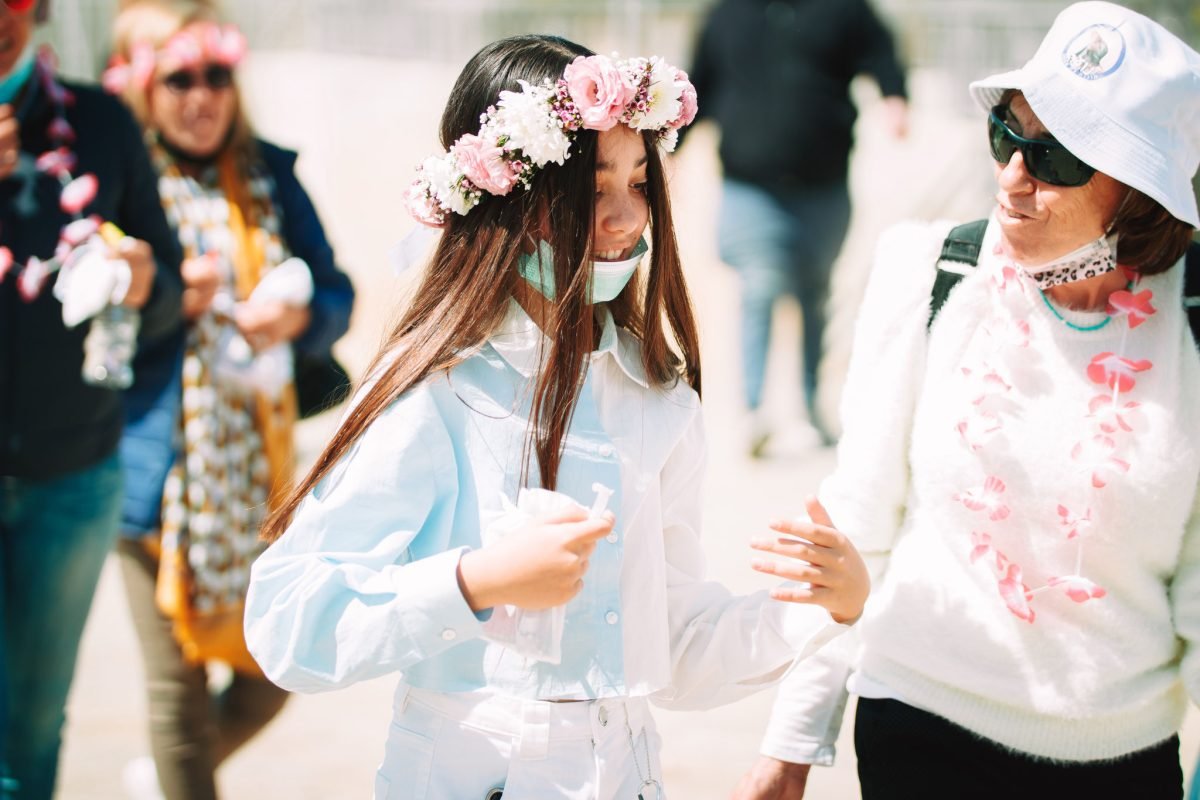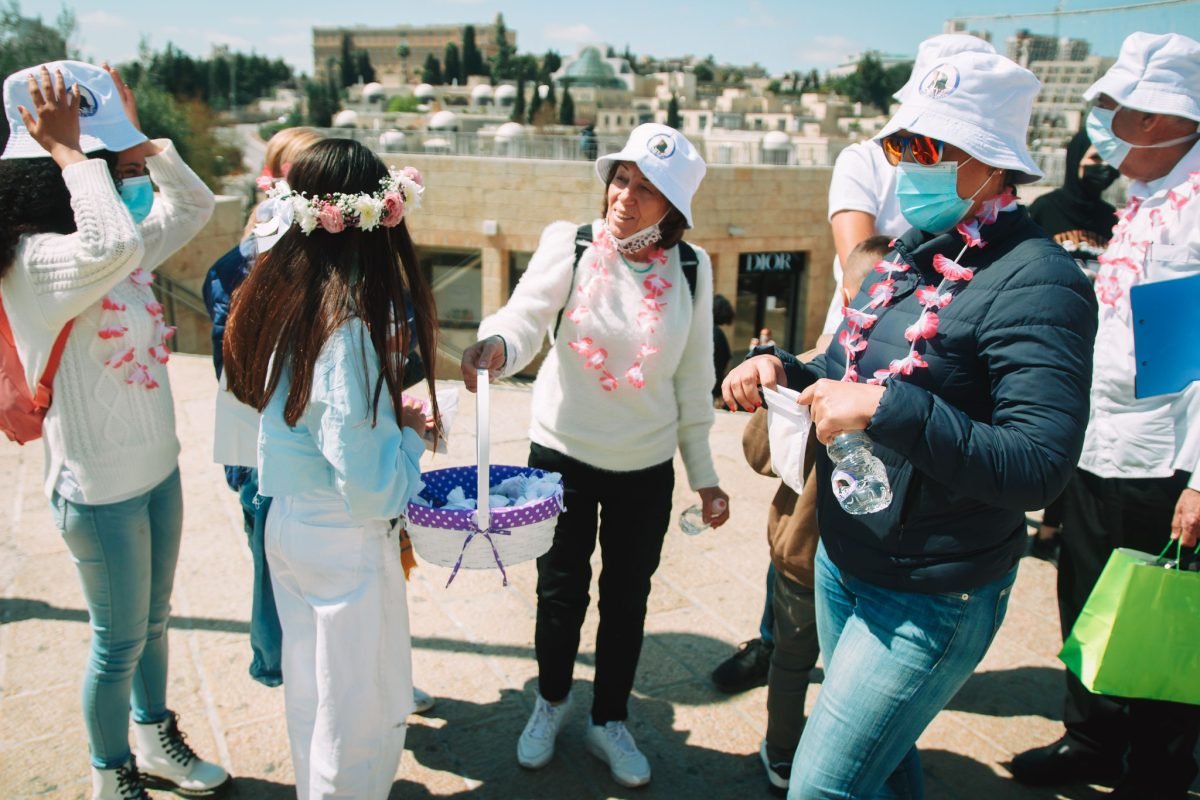 יצאנו לדרך, נערת השמחה עם זר פרחים על ראשה כיאה לנסיכות אוחזת בידו של אבא והסיור בשער יפו מתחיל. איזו תמונה מרגשת שמאחוריהם המשפחה והאורחים ושני אלו מתווים את הדרך. הסיור בחסות הקורונה, למראת שהמסכות על הפנים, קל לראות את ההתרגשות על פני כולם. זה לא רק חיבור לנערת בת-המצווה זה חיבור למורשת ולשורשים. התמקדתי בתמונה מרחוק. שהם עצרו, עומדים ומחכים, המסכות על פניהם. תמונת ניצחון. אנו פה למראת הכול ובייחד, מחוברים אחד עם השני