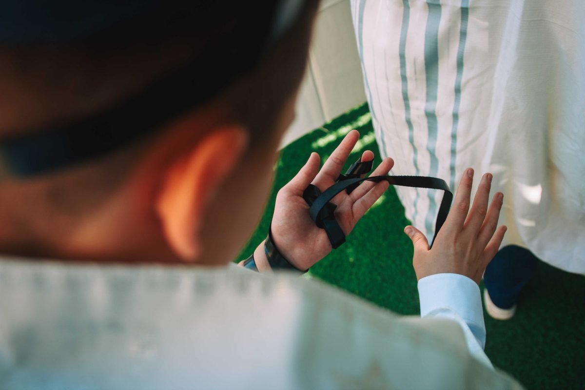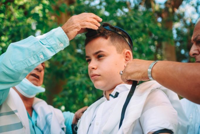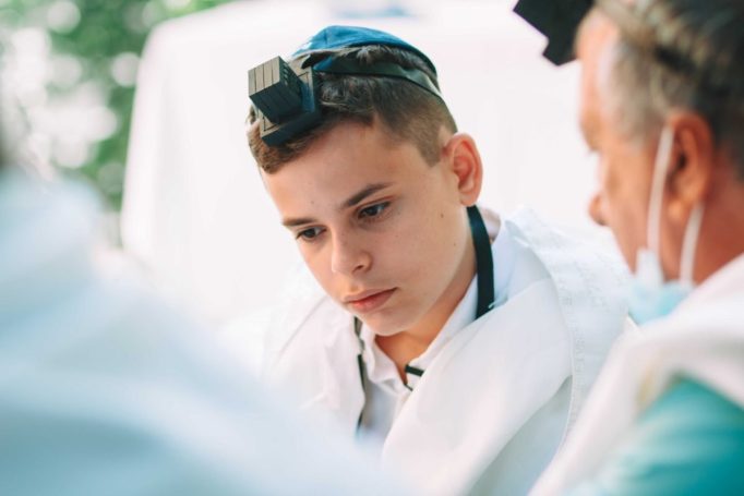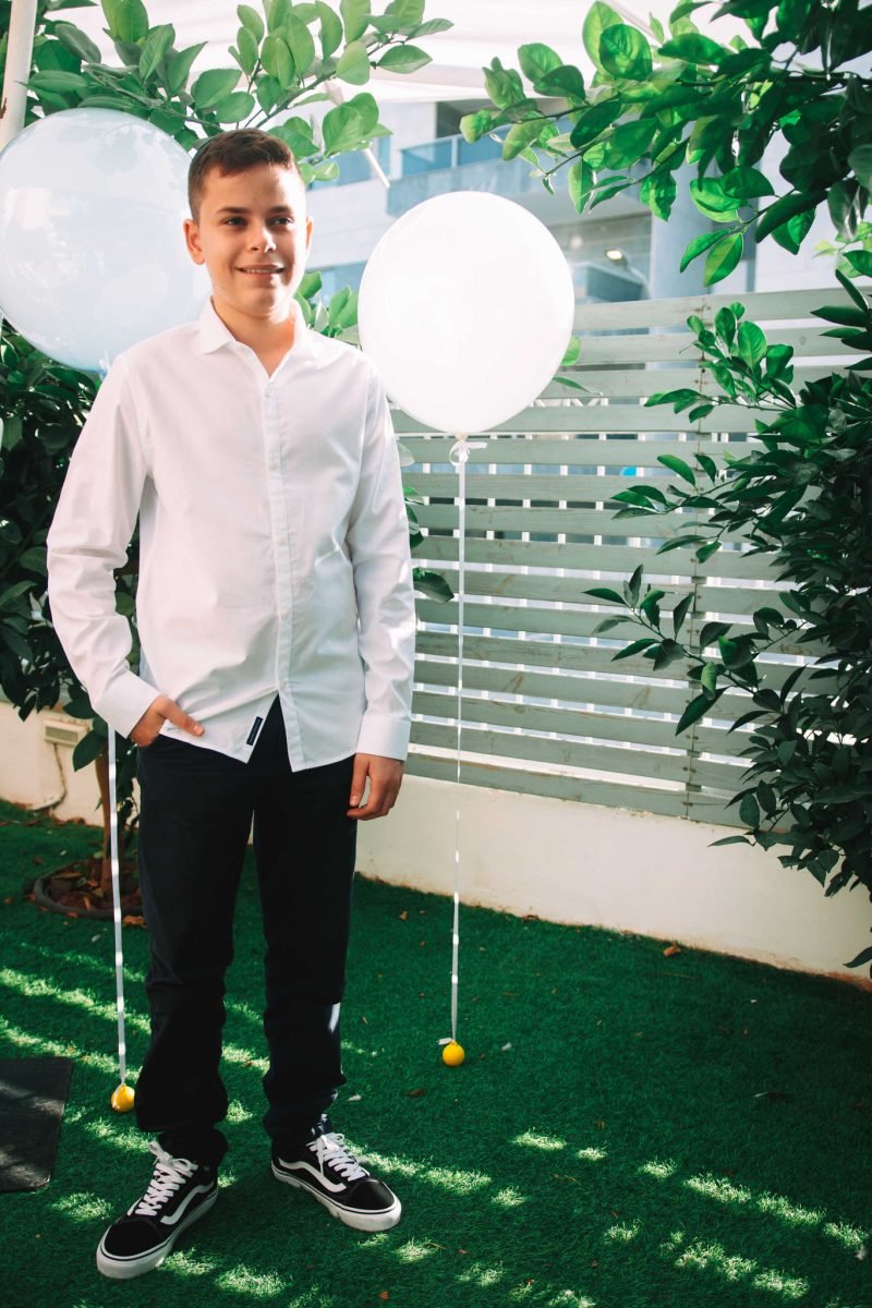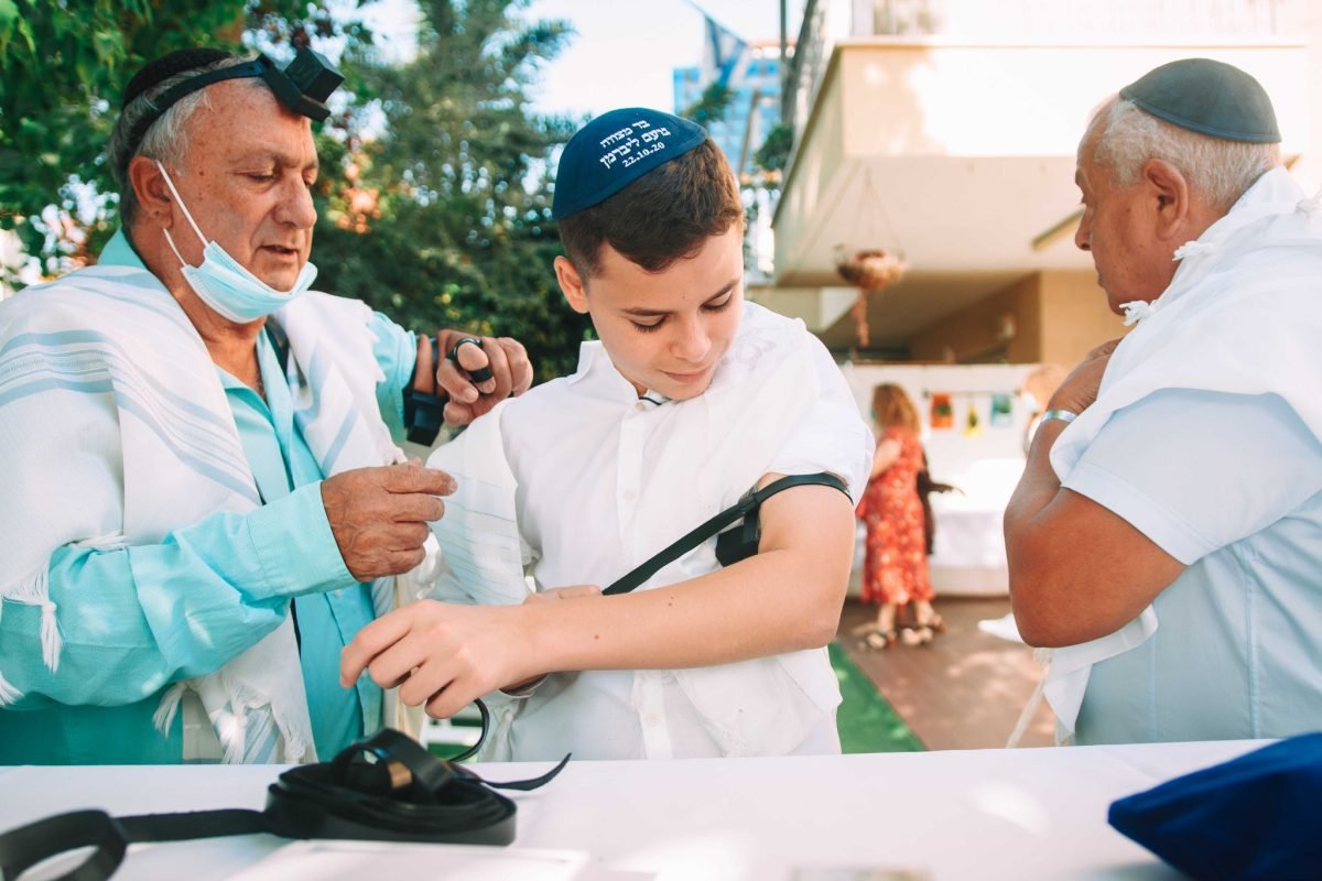 היום אני אספר לכם על עלייה לתורה בבית בגדרה שזכיתי לתעד. תחילה אספר שכשנכנסתי לבית, הרגשתי כמו בבית דאגו לגרום לי להרגיש בנוח למרות שהצילום עלייה לתורה כאן הוא לא צילום שגרתי, כשאתה נכנס לבית של בן אדם אתה נכנס למקום הפרטי ביותר שלו, כבר מהכניסה הרגשתי חום מהמשפחה, משם הגעתי לחצר הבית שבה התרחש טקס העלייה לתורה. קודם כל אני מבטיח לכם שמה שראו עיני יכול לבייש אולם אירועים יוקרתי, ההשקעה הייתה ניכרת. הדבר הבולט הראשון הוא כמות הפרחים שהיו בחצר, סידורי פרחים מושקעים שדומים פחות או יותר לזרים באירועים מושקעים ומעלה, דאגו לבלונים מעוצבים שרואים שהם חלק מן סידור בלונים מיוחד, שקישטו את החצר. את השולחנות מסביב כיסו מפות לבנות, כשעל אחד השולחנות היו מוכנים האביזרים לאירוע ביניהם: תפילין מהודרים, טלית וספרי תורה במיוחד לעלייה. כלל האורחים לבשו לבן, והתהדרו בכיפה ממותגת לאירוע. אפשר היה לראות שגם הטליות היו מיוחדות. כלל האורחים היו עם מסיכות לאור הקורונה, שלא שברה אותם, אולי הסוכריות טיפה, בכל זאת כואב שזורקים סוכריות