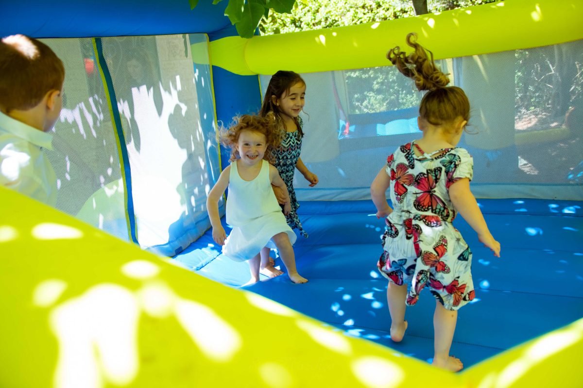 באזור החיצוני של הבית המשפחה ערכה שולחנות עגולים עם מפה לבנה, היה בופה עם אוכל לבחירה מקייטרינג מובחר, בשביל לשלב גם אטרקציות עבור האורחים הצעירים הוזמנו מתנפחים ופעילות של ציורי פנים