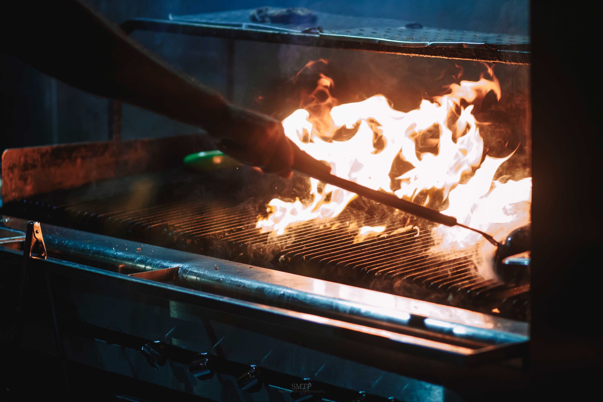 הפלאש השני היה מעל האולם בקומה השניה שמיועדת יותר לנוי, מרפסת לרוחב המקום עם ארון יינות ענק, אז פשוט הנחתי אותו על המרפסת שיאיר את כל השטח של המסעדה מלמעלה